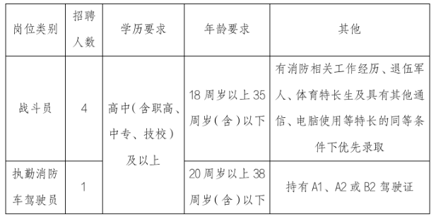 根据人员配备需要,本次招收5名政府专职消防队员,主要从事一线消防宣传、防火巡查、执勤灭火、抢险救援、消防车辆驾驶等工作。