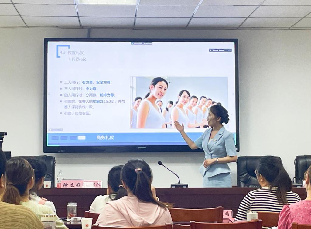 讲座上,徐立娟从公务人员的办公礼仪、形象礼仪、行为礼仪、生活礼仪、服务礼仪等方面开展讲解,重点介绍坐姿、站姿、走姿、蹲姿以及礼貌用语等外在文明礼仪。讲座还采用课件讲解和实例介绍相结合的方式,以现场演示为主,深入浅出、生动活泼、贴近实际,现场气氛热烈,台上台下有问有答,互动频频,掌声不断,赞美不绝。
