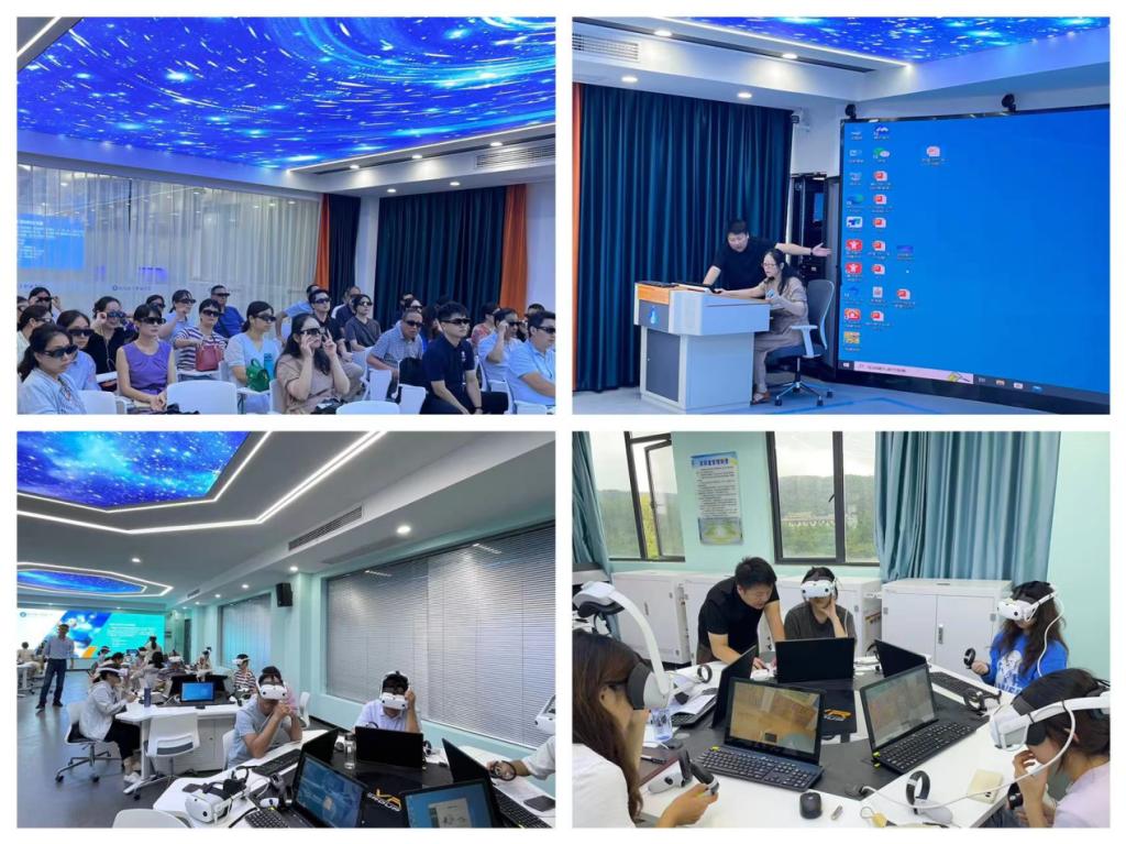 主讲老师从硬件使用和虚拟仿真实训教学管理与资源共享云平台两大方面对我院教师进行了系统介绍。在培训过程中,我院教师上台直接操作,进行VR头显的实操练习,更直观地进行了数字化体验;同时,主讲老师还通过共享屏幕演示虚拟仿真实训教学管理与资源共享平台的操作流程,帮助我院教师了解使用步骤,并对可能出现的问题进行了讲解。