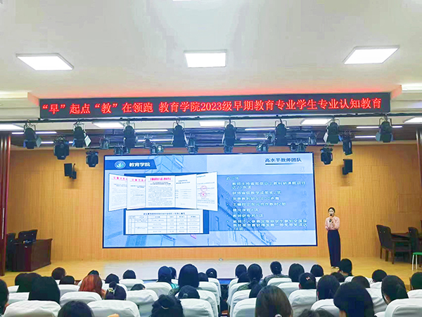 为了帮助新生更好地适应大学生活,提前了解专业发展前沿,增强对早期专业的认知,养成良好的学习习惯,从而更好地对大学三年的学习生涯做出规划。9月17日晚,教育学院在报告厅针对2023级早期教育专业新生开展专业认知讲座。教育学院院长徐立娟担任主讲人。