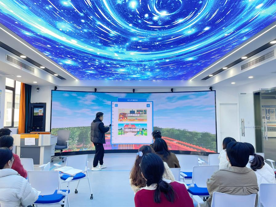 根据《职业教育提质培优行动计划(2020—2023年)》提出的要求,实施职业教育信息化2.0建设行动,大力推进‘互联网+’‘智能+’教育新形态,推动教育教学变革创新,提升教师和管理人员的信息化能力。次培训实行“教—学—做”一体的教学模式,以实际的幼儿园环境创设为例,通过在理论基础与实践能力上的培训,使教师具备虚拟现实开发的基础能力;对实训室硬件设备使用进行系统教学,使教师具备维护实训室设备的能力。
