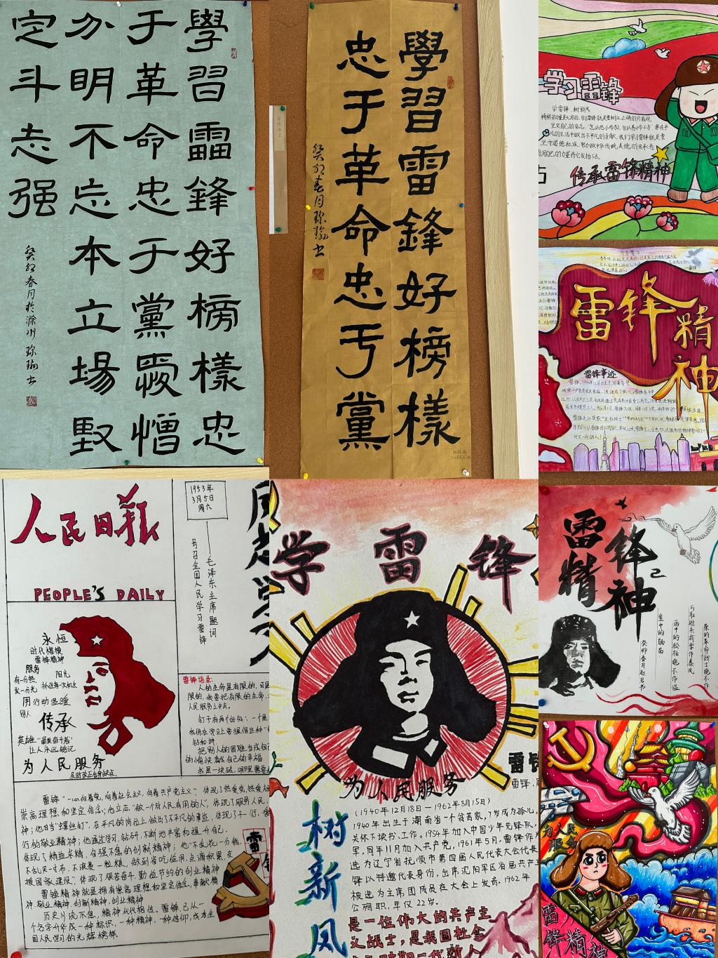 为深入贯彻习近平总书记关于大力弘扬雷锋精神的重要指示,响应新时代雷锋精神的号召,传承红色基因、发扬红色传统,教育学院组织开展“传承雷锋精神,争当时代先锋”学雷锋教育作品创作活动。同学们用手中的画笔、毛笔,描绘流畅的线条、缤纷的色彩讲述雷锋事迹,抒发对志愿者们的钦佩之情,弘扬雷锋精神,争做新时代好少年!