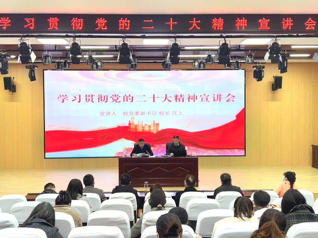 汪上紧扣党的二十大报告原文,从党的二十大的重大意义,过去五年的工作和新时代十年的伟大变革,开辟马克思主义中国化时代化新境界的历史责任,以中国式现代化全面推进中华民族伟大复兴的使命任务,全面建设社会主义现代化国家的目标任务,教育、科技、人才是全面建设社会主义现代化国家的基础性、战略性支撑,以伟大自我革命引领伟大社会革命的重要性,不忘初心、牢记使命、努力办好职业教育等八个方面,面向广大师生宣讲党的二十大精神。