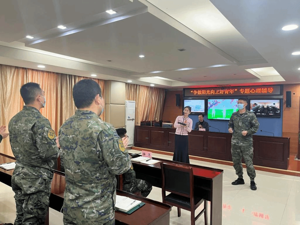 徐立娟以“官兵心理健康维护与调适”主题,针对武警官兵的职业特征和心理特点,从心理健康,常见心理问题,心理问题维护与调适三方面进行讲授,用详实的理论、典型的事例,娓娓道来,从理论和实践上引导大家正确认识心理健康问题,运用科学方法进行调适。她通过“幸福拍手歌”“教练说”暖身小游戏与现场武警官兵频频互动,令整场讲座充满欢声笑语,在轻松愉悦的氛围中进行现场减压。