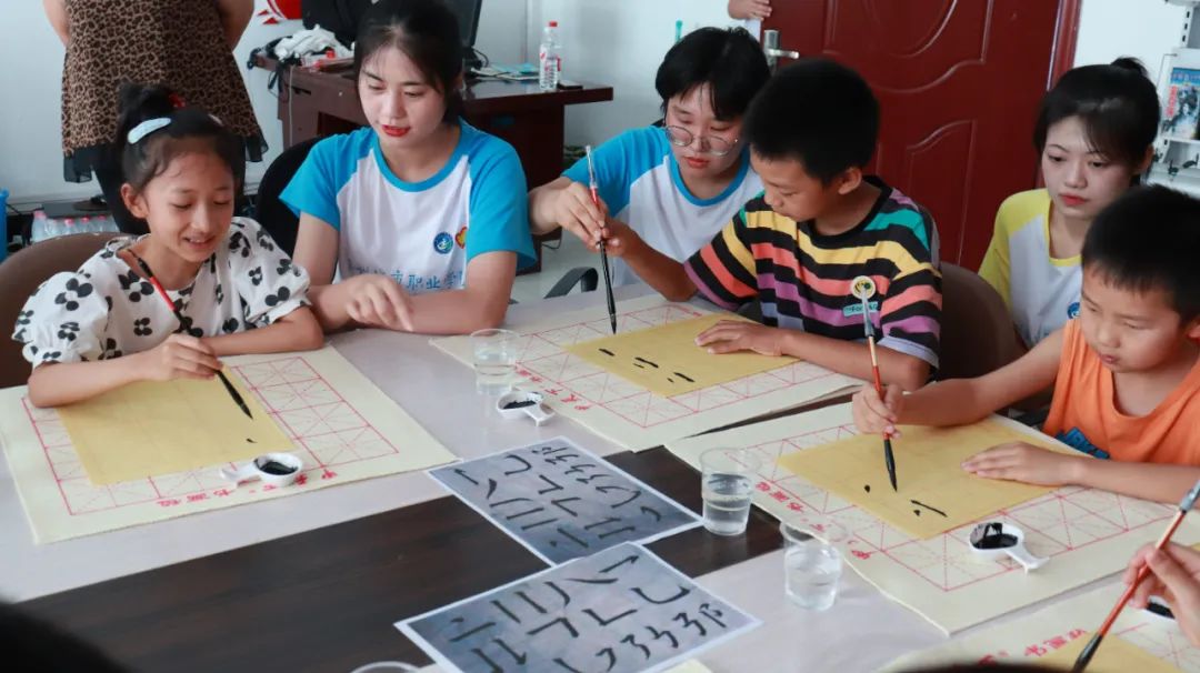 文化是国家的灵魂,文字是文化的载体。教育学院2022年暑期“三下乡”乡村振兴实践队来到全椒县石沛镇文化站开展“关爱留守儿童 助力乡村振兴”系列实践活动。实践队员们为小朋友们带来书法入门课程,通过书法知识的培训与练习,感受传统经典文化的魅力,为孩子们的全面和谐发展添砖加瓦。