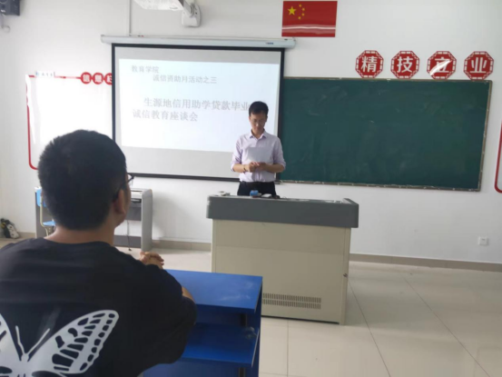 会上,杨维懂老师首先肯定了国家助学贷款政策为家庭经济困难学生带来的帮助,希望同学们珍惜个人信用记录,积极履行偿还贷款本息的义务,随时保持和学校、老师的密切联系,并特别提醒同学们需防止因工作忙碌而过失违约。其次,他强调了诚实守信的重要性,同学们不能因为不能按时偿还贷款本息而进入征信黑名单。