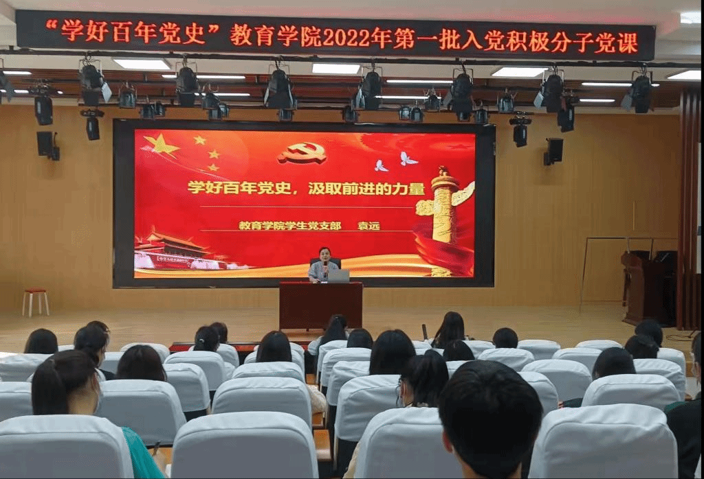 2022年5月4日下午4时40分,教育学院分党校在教育学院报告厅及C1南2203通过现场和直播的方式举办2022年第一期培训班第五讲暨结业典礼。教育学院学生党支部组织委员袁远带来主题为“学好百年党史,汲取前进的力量”专题党课,并举行结业典礼。