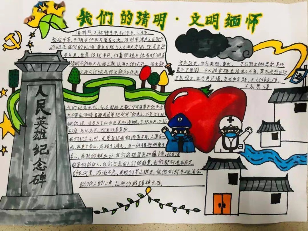 为进一步弘扬英烈事迹、传承英烈精神,教育学院团总支于近日开展了“清明节·缅怀先烈”手抄报比赛。在同学们的精心筹备下,一份份“清明节手抄报”展现在大家面前,有的突出文明祭扫主题,有的弘扬英烈精神,紧扣时代旋律,有的围绕重大事件祭扫专题并宣传在中国革命、建设、改革历史进程中献身的英雄烈士。