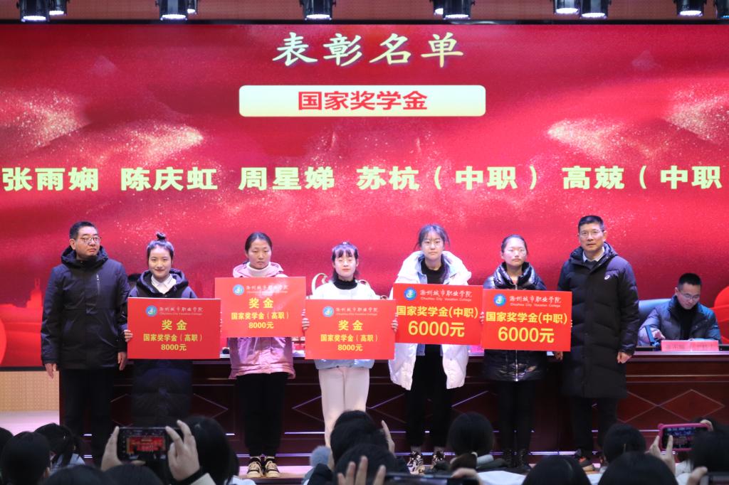 会上,徐立娟宣读了国家奖学金、国家励志奖学金获奖名单、2021年度先进集体和个人的表彰文件。在热烈的掌声中,与会领导分别为获得优秀指导老师、国家奖学金、国家励志奖学金、文明教室、最美寝室、优秀学生干部等获奖代表颁奖。