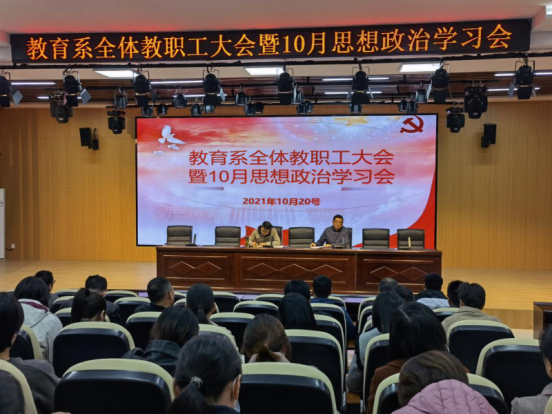 10月20日下午,教育系在C2北1102会议室召开了全体教职工会议暨10月思想政治理论学习会,教育系党政班子成员及全体教职工参加会议,会议由系主任高国柱主持。