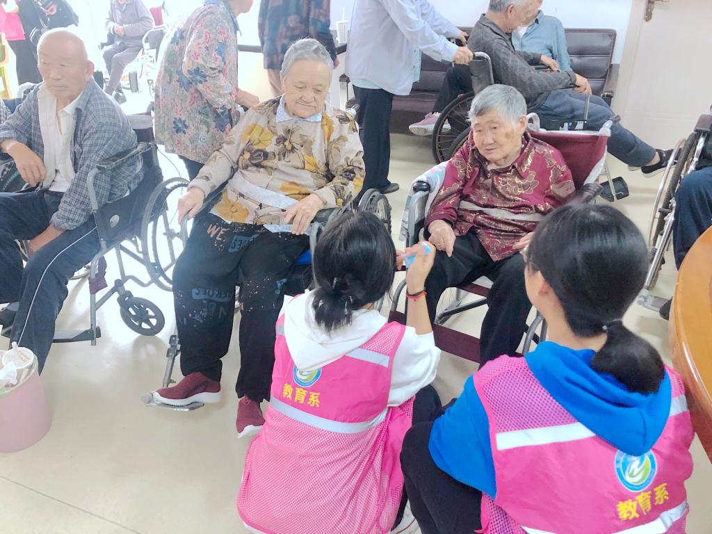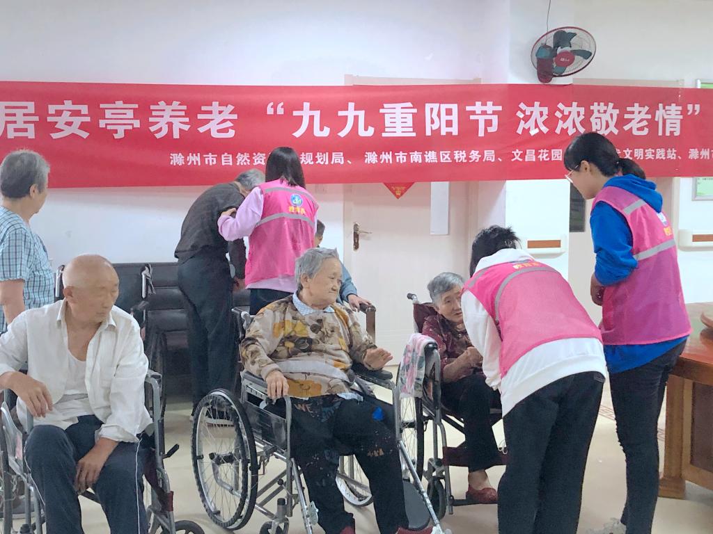金秋十月爽,九九话重阳。10月14日,迎来了我国第九个法定“老年节”。为弘扬中华民族爱老敬老的优秀传统美德,营造尊老、爱老、助老的良好氛围,10月14日,教育系团总支书记黄正顺、辅导员于连娟、魏娟与青年志愿者一同怀揣尊敬与感恩来到滁州市南谯区安居养老护理中心为老人们献上节日祝福、开展志愿服务活动。