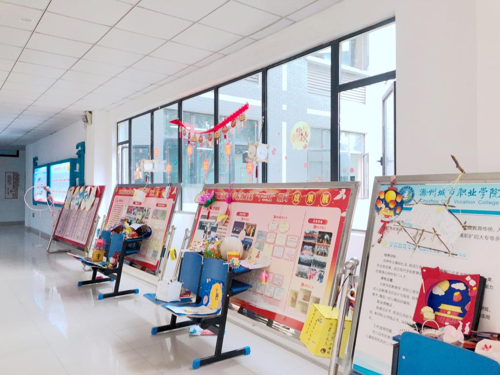 为营造浓厚的节日氛围,同时发挥同学们的专业特长,学生自行制作了形式不一的中秋主题手工作品,其中同学们用拼接灯笼的材料、灯线、黏胶等组装成一盏圆月灯笼,夜晚打开开关,可以看到灯笼内的明月、中秋书法等元素。