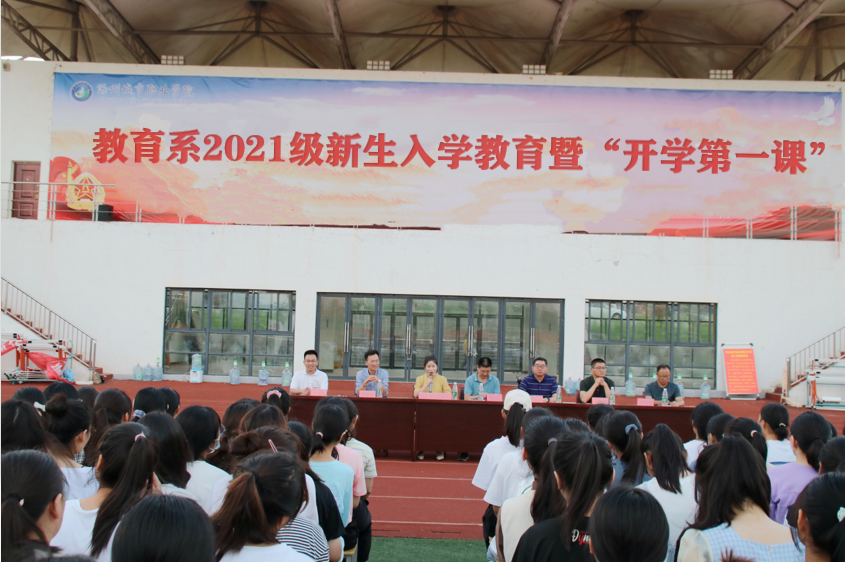 9月12日,教育系在学院操场举行2021级新生入学教育暨“开学第一课”活动。教育系党总支书记钱庆兵、教育系主任高国柱、教育系副主任刘明辉、学管秘书杨维懂、钟久海、团总支书记黄正顺、新生辅导员(班主任)以及2021级入学的742名新生参加活动。此次活动由教育系党总支副书记徐立娟主持。