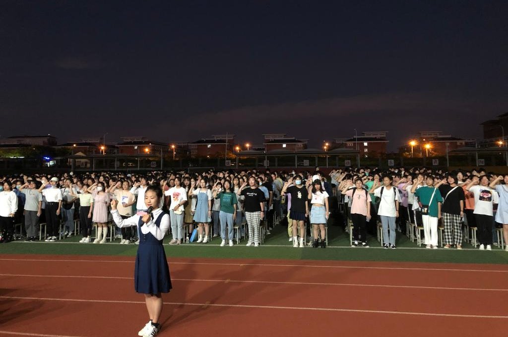 最后,优秀学生代表张雨娴带领全体新生面对国旗进行了庄严的师范生宣誓:“我志愿成为一名光荣的人民教师,忠诚党的教育事业,遵守教育法律法规,铭记 ‘修德立身,精技立业’校训,恪守师德,身正垂范......”随着一句句令人激情澎湃、热血沸腾的誓词铮铮落地,一种强烈的荣誉感、自豪感、责任感和使命感在每位学生的心中油然而生。
