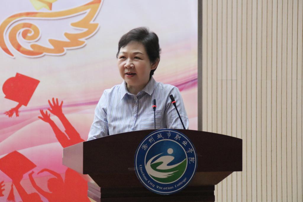 于连娟作为教师代表发言,她对顺利完成学业毕业的同学们表达了祝贺,同时叮嘱同学们尽快实现身份转换,要勇于担当,胸怀国家,始终保持一颗平常心,勇敢地迎接人生的每一个挑战,做最好的自己,做最棒的城院人。