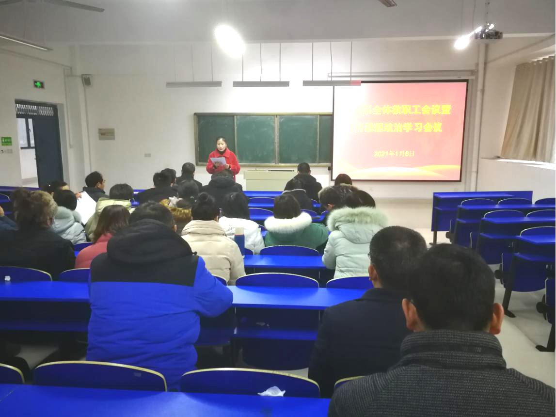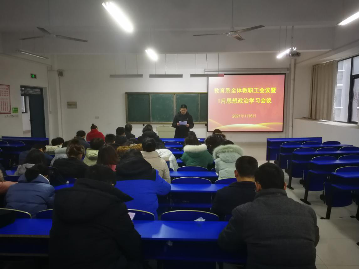 1月6日下午,教育系在C1南2203召开了全体教职工会议暨1月思想政治理论学习会。系党总支书记钱庆兵,系主任、党总支副书记高国柱,系党总支副书记徐立娟及全体教职工参会。会议由系书记钱庆兵主持。