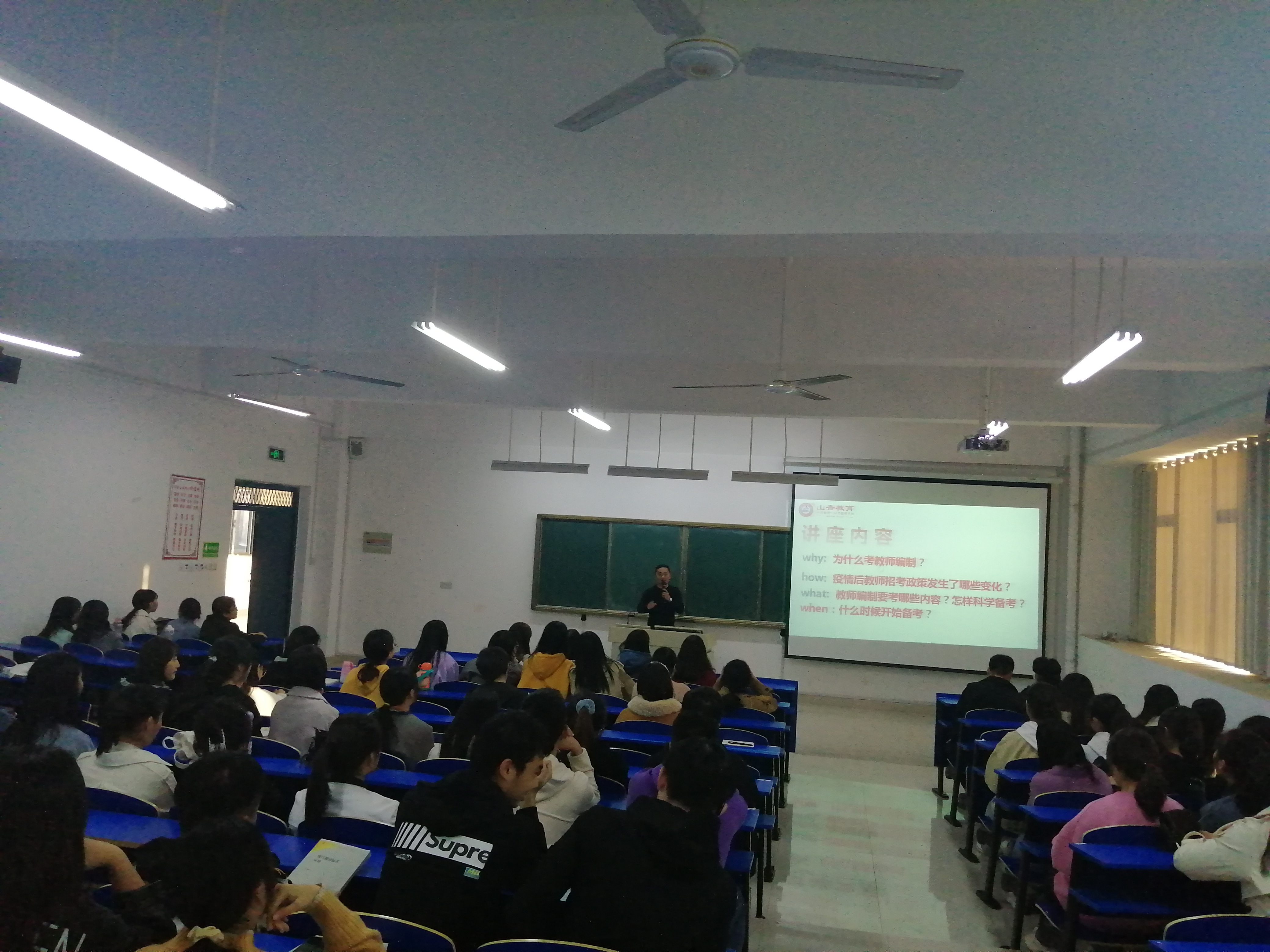 11月11日下午,教育系邀请山稥教育机构资深编制考试辅导专家周周老师为2021届毕业生做考编辅导讲座。系党总支副书记徐立娟主持讲座。