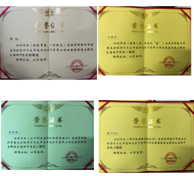 蒋旭深入学习贯彻习近平新时代中国特色社会主义思想,特别是习近平总书记关于青年工作的重要思想,以生动的文笔展现了当青年与祖国共奋进、与时代共成长的生动画面,获得征文比赛特等奖的佳绩,教育系王瑞彤、王瑞丽及张雨娴分获征文比赛一等奖、二等奖。