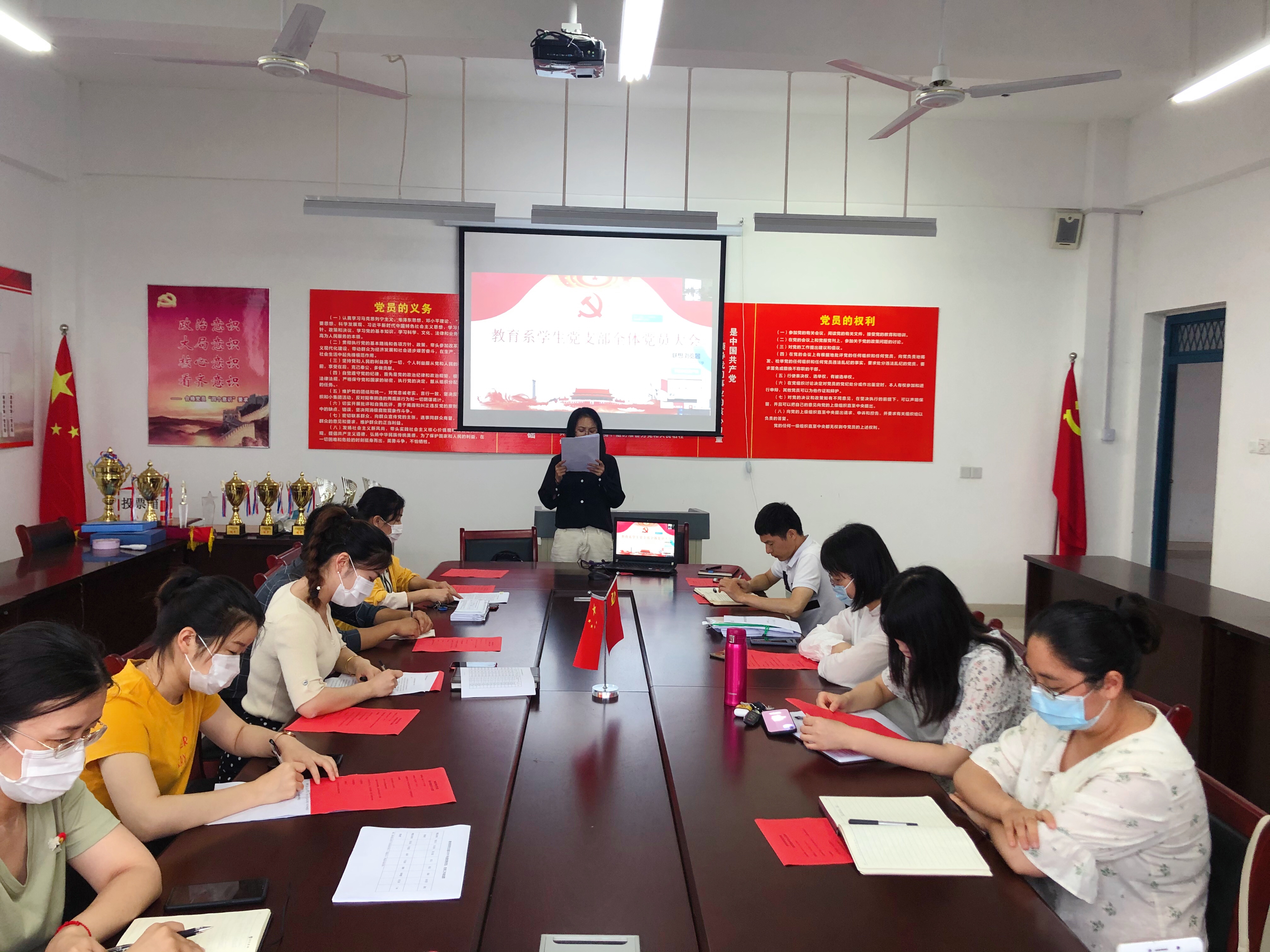 为进一步加强党员队伍建设,根据学院党员发展计划,教育系学生党支部于6月29日上午10时40分依托钉钉线上平台在C1南411会议室召开接收预备党员大会。会议由学生党支部书记徐立娟同志主持,支部全体党员及被发展对象参加了此次会议。