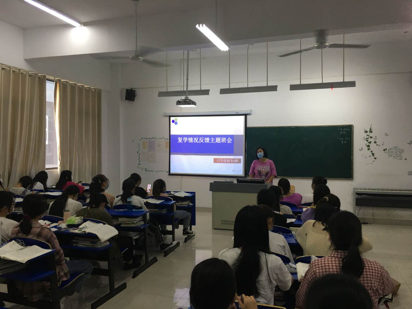 各辅导员还对学生复学注意事项和在校期间佩戴口罩、晨午检、洗手清洁、同学交往注意社交距离、室内卫生通风等疫情防控注意事项作了重点强调,要求同学们要注意开窗通风、勤洗手、戴口罩。