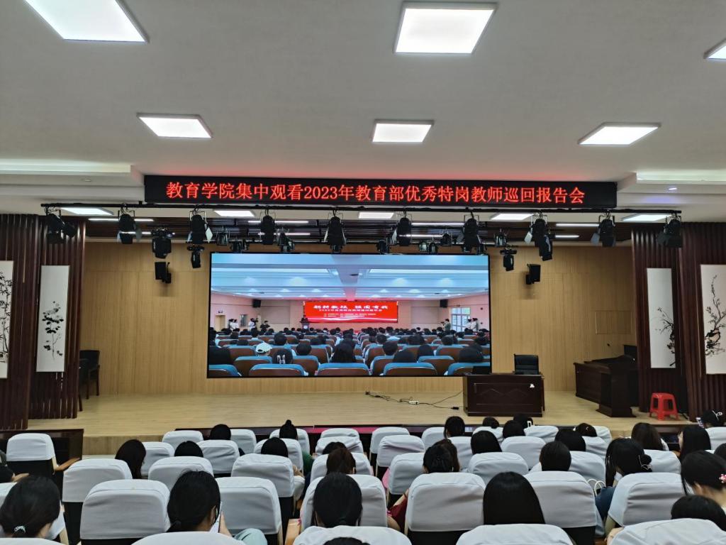 为深入学习贯彻习近平总书记关于教育的重要论述,特别是对教师队伍建设的系列重要指示批示精神,做好“第39个教师节”宣传庆祝活动,大力宣传优秀特岗教师的先进事迹,展现新一代青年教师阳光美丽、爱岗敬业、无私奉献的新形象,同时作为新学期开学第一课。9月3日,教育学院组织师生观看“躬耕教坛,强国有我”2023年教育部优秀特岗教师巡回报告会直播。