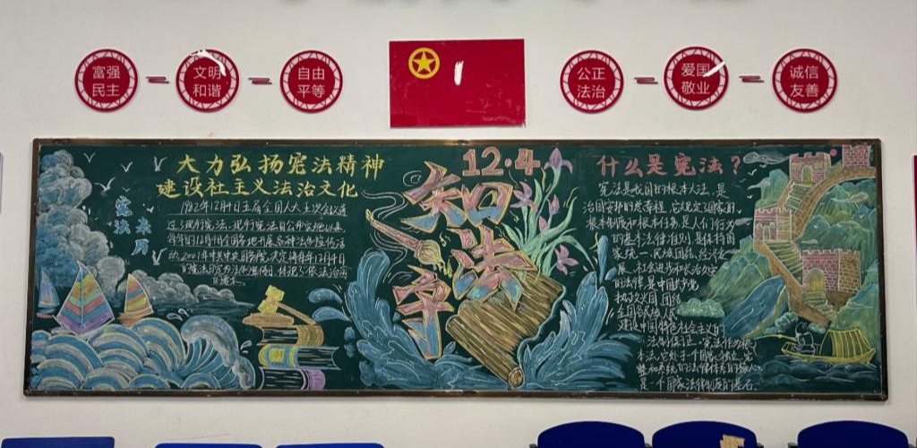 为推动同学们学习宣传宪法,强化宪法意识,弘扬宪法精神,维护宪法权威,增强法治观念,提高法律意识,我院各团支部开展以“国家宪法日”为主题的学法守法黑板报展示活动。通过黑板报的宣传与制作,普及法律知识的同时,也提高了同学们遵纪守法的意识,对宪法有了更深层次的认识和理解,也建立起自己的法治意识,使法治观念深入同学们心中。此外,我院还通过微信公众号、电子屏等宣传阵地营造人人学法的良好环境。