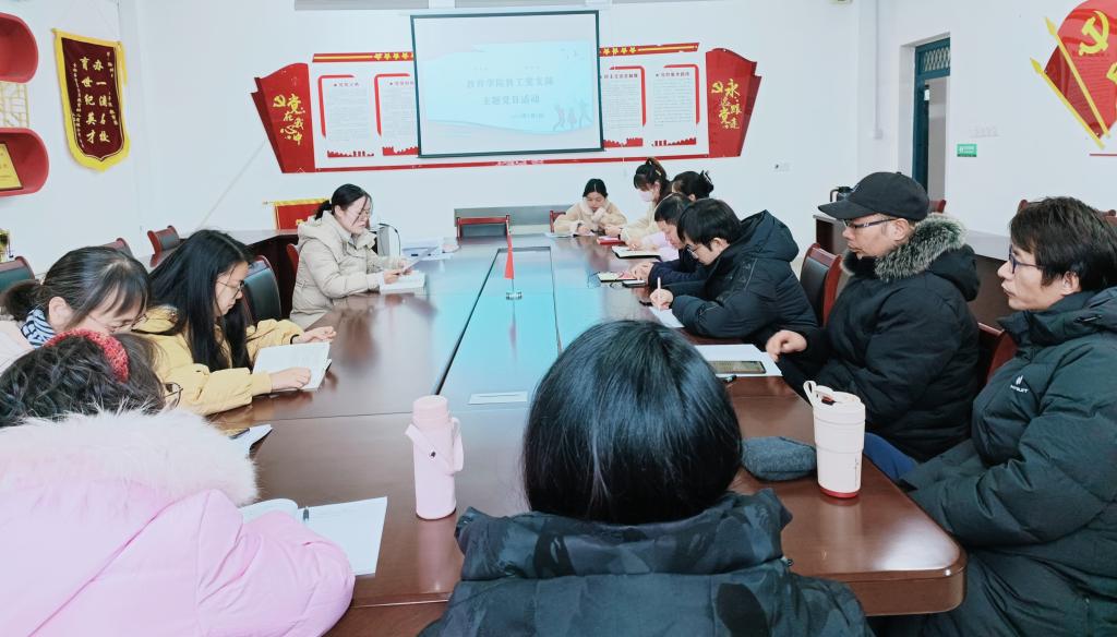 为深入学习宣传贯彻党的二十大精神,1月3日下午,教育学院教工党支部在C1南411开展主题党日活动。会议由教工党支部书记王李艳主持,教工党支部全体党员参加。