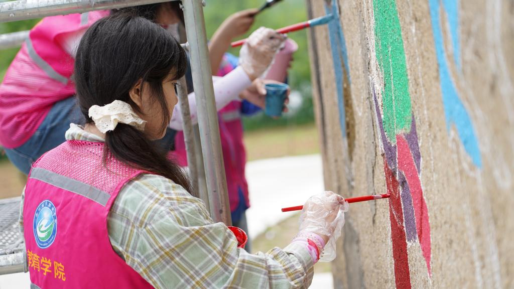 在活动期间,学生们充分发挥自己的想象力和创造力,将一幅幅充满生活气息和时代特色的墙绘作品呈现在村民面前。这些作品既有反映农村生活习俗的生动场景,也有展现新农村建设和农民精神风貌的励志标语,还有融合当地文化元素的创意图案,让原本单调的墙面焕发出新的生机。