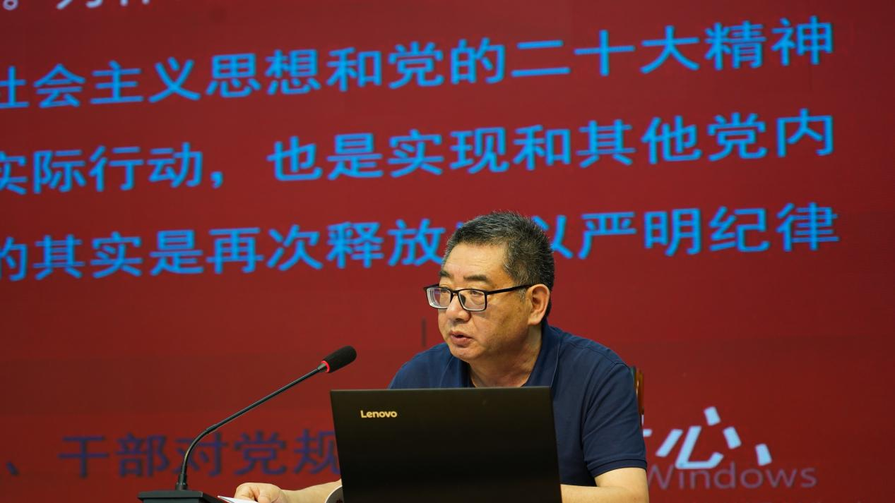高国柱强调全体党员通过本次学习要提高对党纪规范的认识,做到学深悟透、入脑入心,要按要求完成本次党纪学习教育的任务,做到自觉将纪律要求内化于心、外化于行,要提高党纪规范的认识程度,做到知敬畏、存戒惧、守底线。同时,高国柱勉励参会的师生严格要求自己,主动加强学习,努力做到带头学习的表率,在学习中生活中起到先锋模范作用。(文:丁文娟,图:黄正顺,初审:魏娟,复审:刘亮,终审:高国柱)