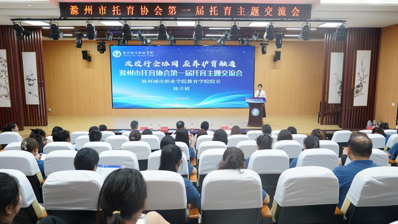 教育学院院长徐立娟致欢迎辞,对各位嘉宾的到来表示热烈欢迎,并介绍滁州市托育行业协会基本情况、宣读滁州市托育行业协会章程。她表示,促进托育服务高质量发展是中国式现代化的必然要求,是人口长期均衡发展的必然选择,是保障和改善民生的基础性工程。希望通过本次交流会,为托育服务高质量发展提供建设性意见和建议。