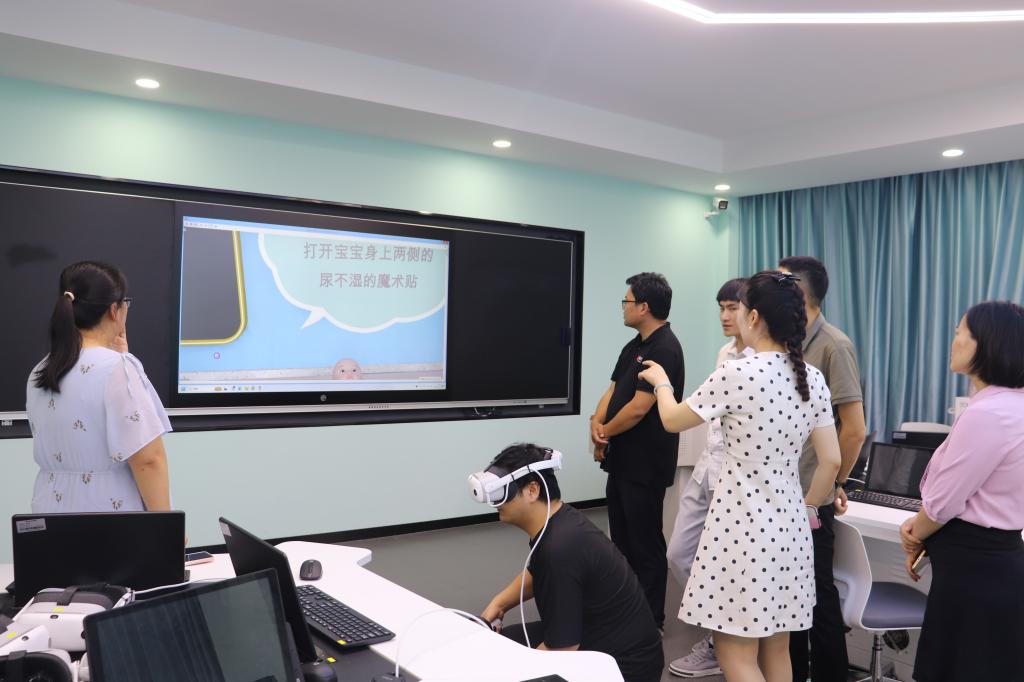 为推进早期教育专业人才培养,深化教育技术与教学内容的深度融合,7月12日上午,教育学院在沉浸式虚拟仿真实训室召开虚拟仿真课程定制资源建设研讨会,教育学院院长徐立娟、早期教育系主任徐校会等参与会议,共同探讨和推进《0—3岁婴幼儿保育和教育》及《婴幼儿亲子活动设计与指导》两门虚拟仿真课程定制资源建设研讨与适配。