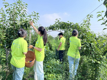 助梨小分队在梨园负责人的带领下进入梨园种植基地进行采摘,帮助果农完成采摘工作。据了解该种植基地采取“合作社+农户”模式来助推“梨经济”提质增效,其他应季水果为辅种植销售,成为农民增收的支柱产业。队员们穿梭在梨树林间,个个干劲十足,分工协作,梨园里劳动的身影熙熙攘攘,洋溢着青春的活力。