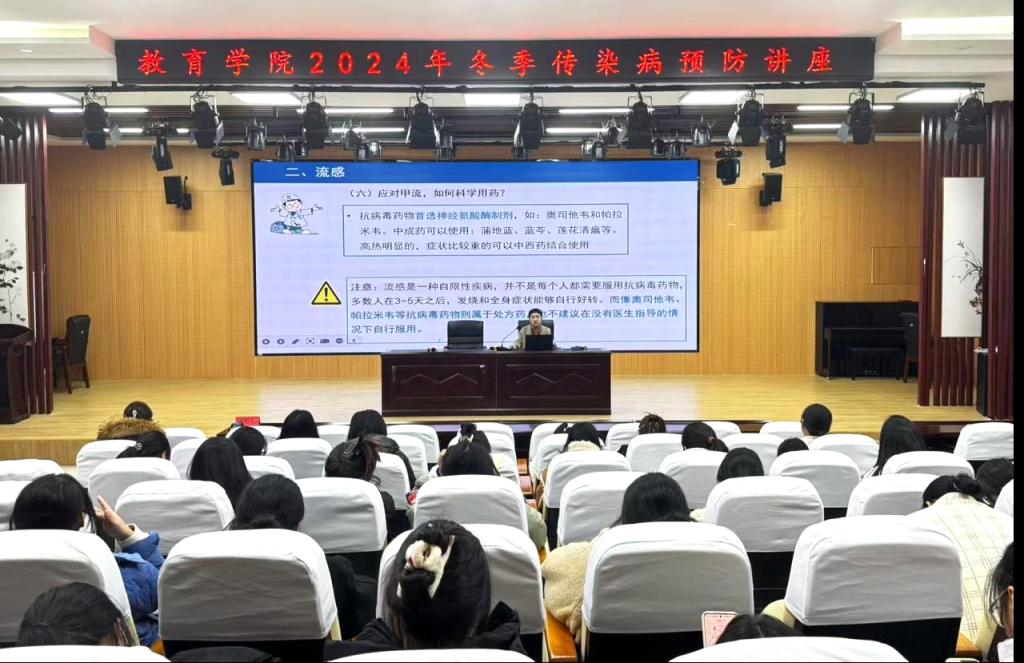 为增强学生传染病防控意识,提高自我防护能力。11月28日,教育学院特邀安徽省预防医学会委员,校质量管理中心督导室主任解萍副教授在教育学院报告厅举办冬季传染病预防讲座。教育学院各班生活委员和相关辅导员参加讲座。