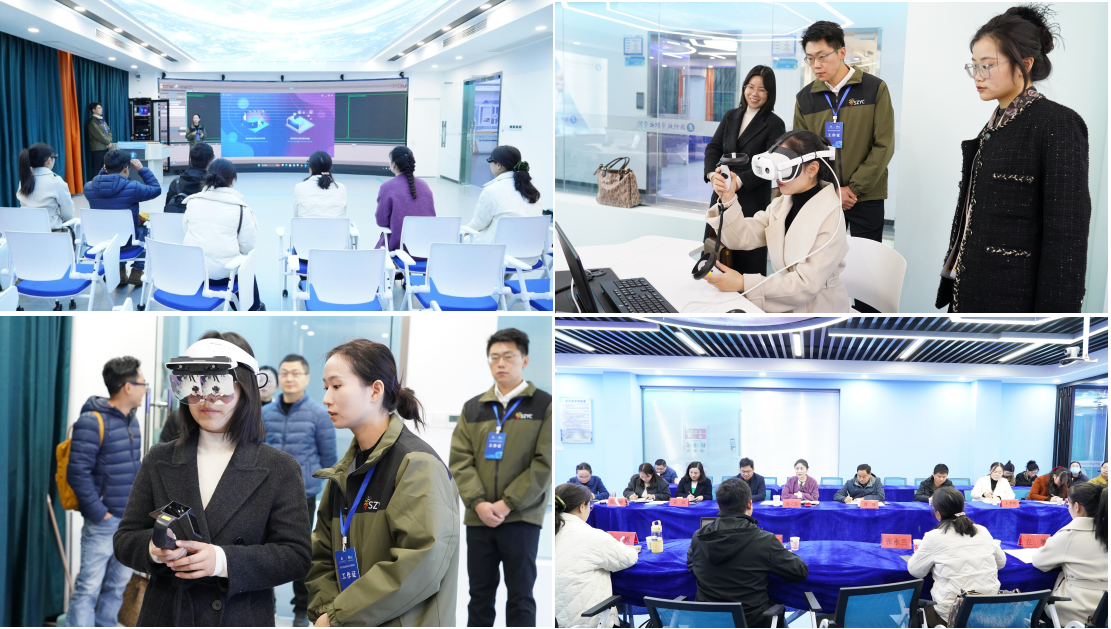 张永兰一行首先在教育学院党总支书记刘亮带领下实地参观了校史馆、教育学院现代教师教育示范实训中心和智慧托幼MR虚拟仿真实训基地。随后,交流研讨会议在静思楼405会议室举行。教育学院院长徐立娟对池州职业技术学院教育系一行的到来表示热烈欢迎,并从办学规模、教育管理、团队培养、制度建设、近几年工作成绩等方面介绍了教育学院基本情况。学前教育专业负责人王李艳、小学教育专业负责人郎娟娟分别就各自专业建设情况做交流发言。
