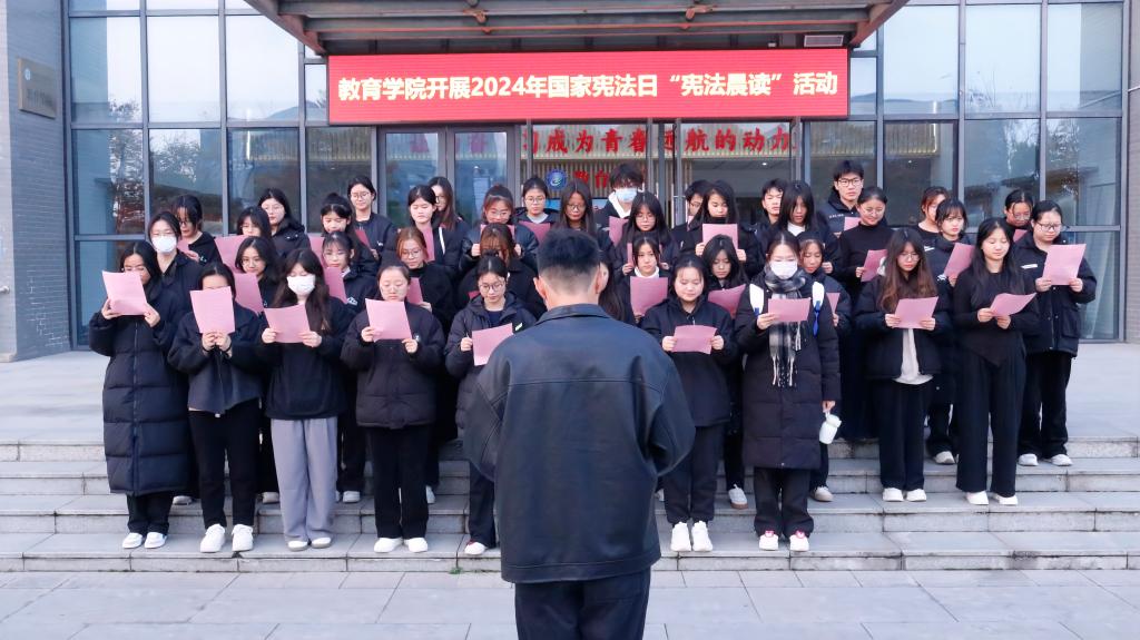 为引导学生学习宪法、尊崇宪法,助力法治校园建设,教育学院于12月3日至4日组织开展“宪法晨读”活动,同时组织学生在线直播观看2024年国家宪法日教育系统“宪法晨读”活动。
