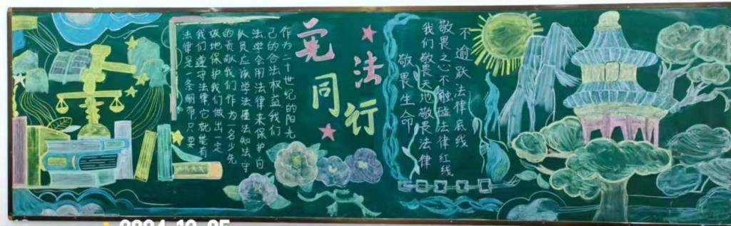 各班还围绕宪法学习主题创作了黑板报。同学们充分发挥创意与才华,用生动的文字、形象的插画和精美的排版,阐释对宪法的理解与感悟,在校园内营造出浓厚的宪法学习氛围。