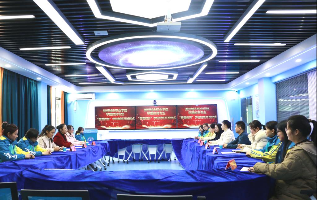 为进一步深化产教融合、校企合作,提升人才培养质量,构建早期教育专业与企业紧密相连的人才价值关系链,助力学生更好就业,1月6日下午,我院与滁州市春雷教育信息咨询有限公司成功举行了早期教育专业“春雷教育”学徒制班签约暨开班仪式。滁州市春雷教育信息咨询有限公司董事长袁修凤、教育学院院长徐立娟、系主任、专业负责人、早期教育专业学徒制班班主任及全体学员出席仪式。副院长袁远主持会议。