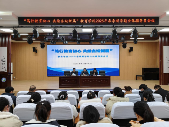 春风渐暖,从容开序。为进一步明确新学期工作方向,提升学生工作质量,确保各项工作有序开展,2月19日下午,教育学院在学院报告厅召开2025年春季新学期全体辅导员会议。教育学院党总支书记刘亮、党总支副书记陈立超、团总支书记黄正顺及全体辅导员参会。陈立超主持会议。