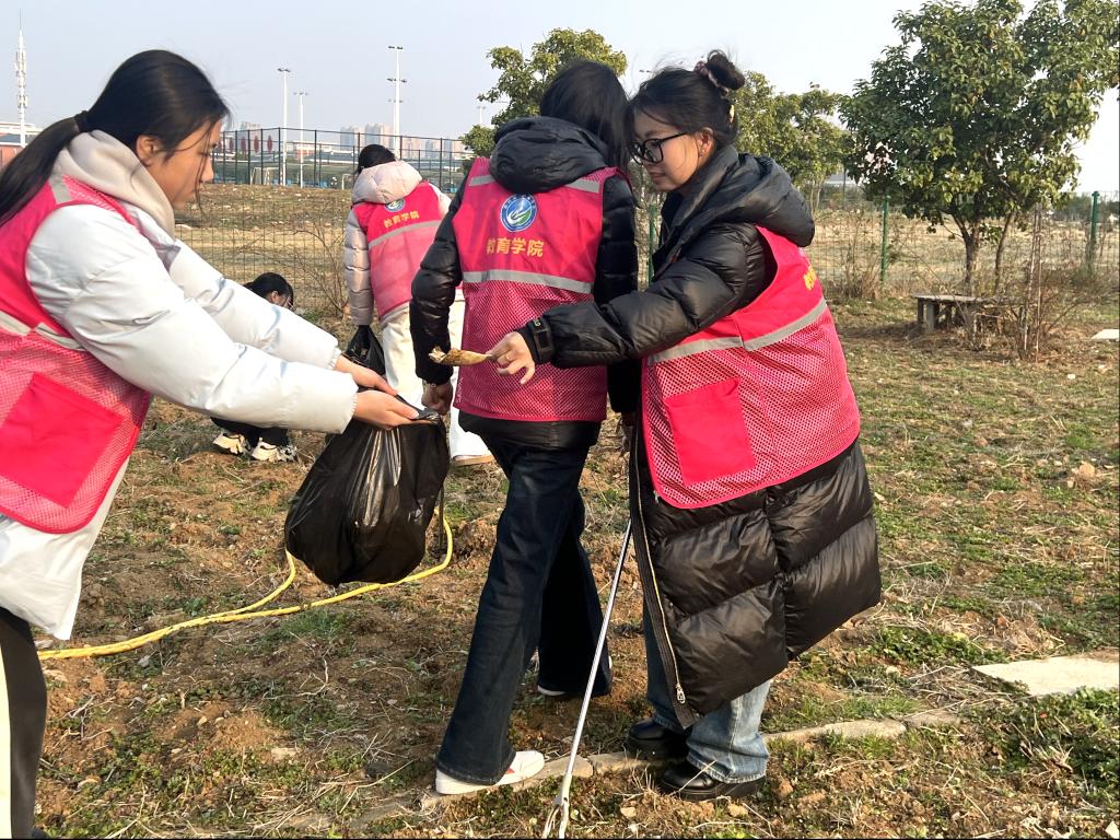 在心灵驿站中,同学们拾起散落的垃圾,仔细清理枯枝、纸屑等杂物。尽管春寒料峭,但大家依然热情高涨,用实际行动诠释了雷锋“不怕脏、不怕累”的奋斗精神。
