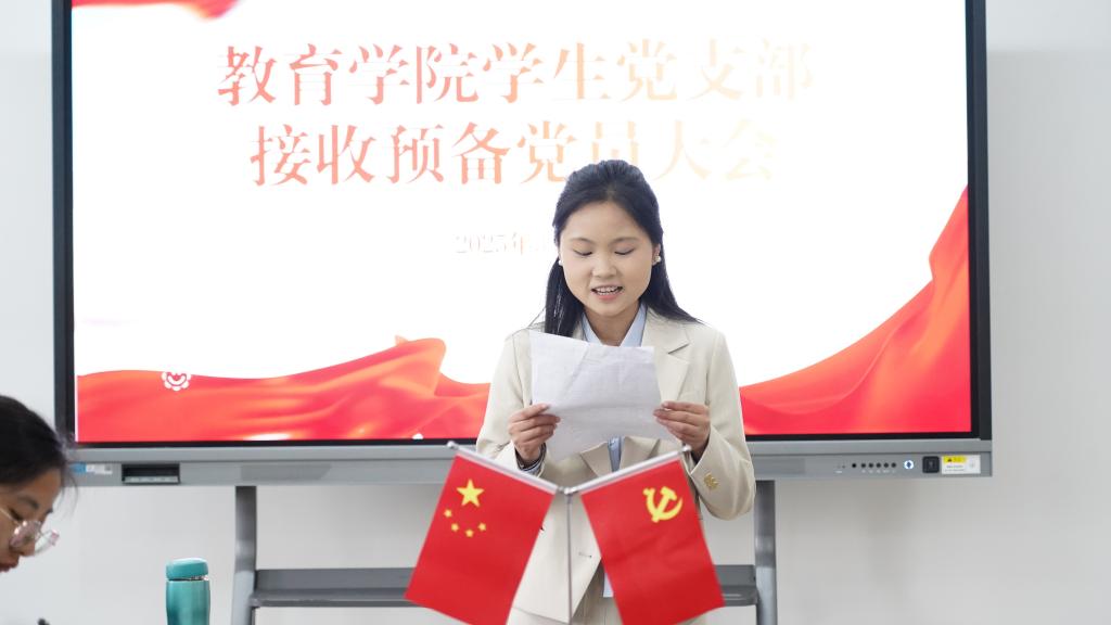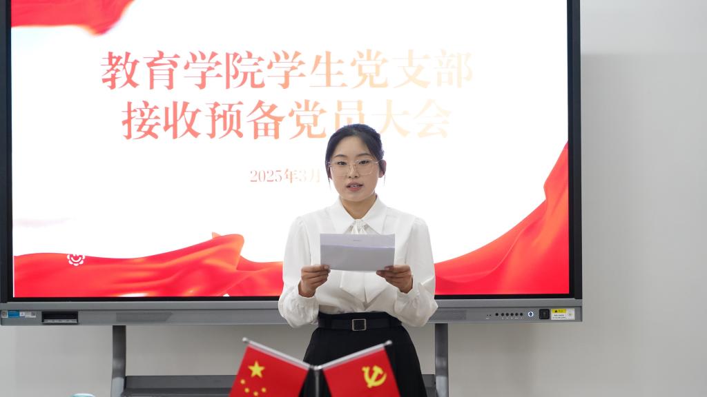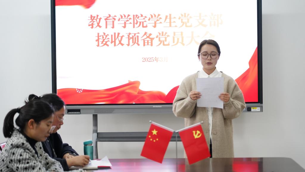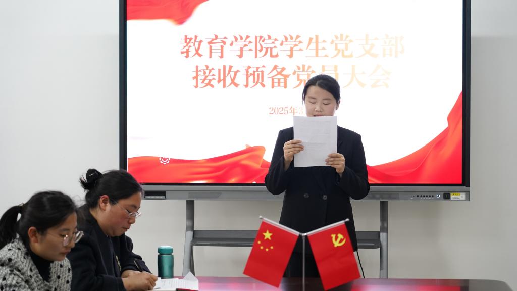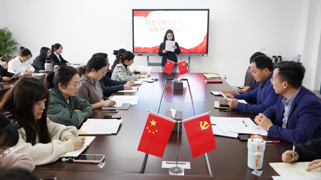 为加强党组织建设,充实党员队伍,3月27日,教育学院学生党支部在恩镇楼2202党员活动室召开接收预备党员大会。支部全体党员、入党介绍人出席会议,会议由党支部副书记杨维懂主持。