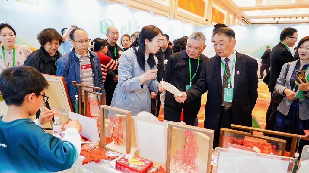 活动现场气氛热烈,人潮涌动。非遗展区作为推介会的一大亮点,吸引参观人员纷纷驻足。我院剪纸社团成员现场展示精湛剪纸技艺,一幅幅精美的剪纸作品在他们手中诞生,无论是细腻的线条,还是生动的图案,都充分展示了剪纸艺术的独特魅力,引发了现场观众对传统文化的浓厚兴趣。