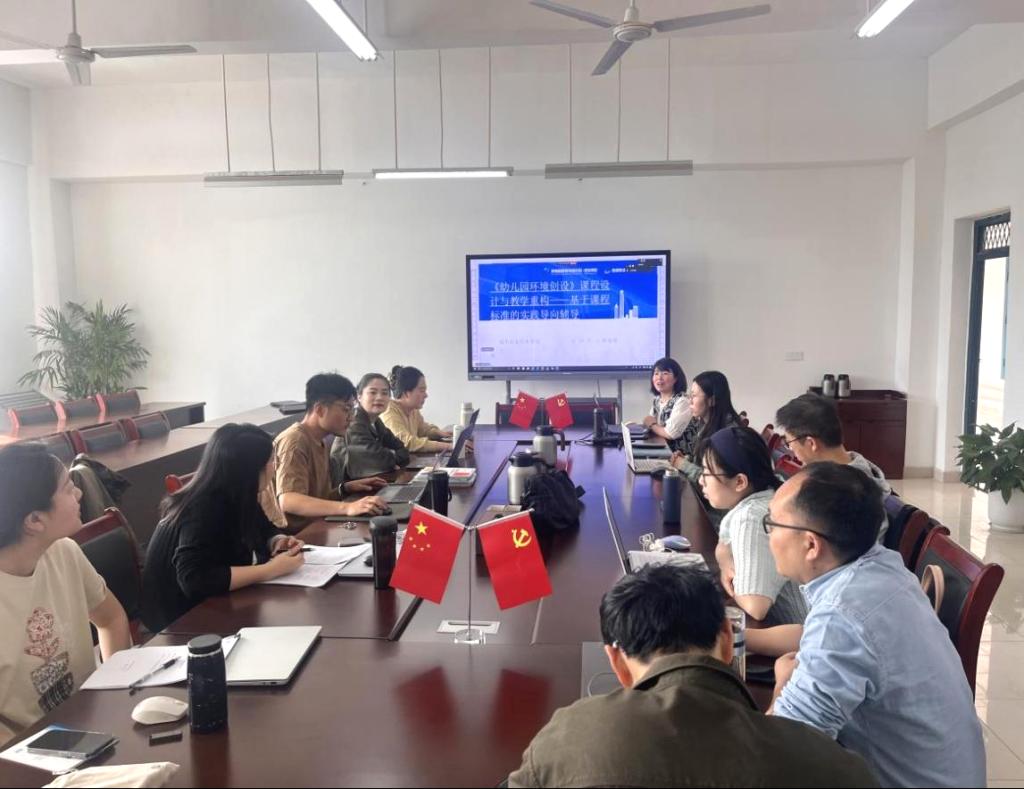 为深入贯彻职业教育高质量发展策略,推进教育学院金课建设,4月19日,教育学院联合职业教育数智研究中心,特邀校外专家邰康锋教授,组织《幼儿园环境创设》金课建设团队全体成员,于教育学院恩镇楼2202会议室举办“金课建设专题工作坊研讨会”。本次活动聚焦课程标准优化与教学设计创新,通过专家引领、实践研讨与现场修订,助力课程团队打造高水平金课,为学前教育人才培养注入新动能。