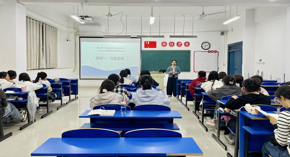 为确保考试顺利进行,教育学院开展了1+X社会心理服务职业技能等级证书(中级)技能培训。教师团队积极研讨证书对学生核心能力要求,结合岗位实际,确立考证授课内容重难点,并按照培训计划,开展培训,学生通过培训和模拟测试全面系统地掌握了社会心理服务相关知识与技能。
