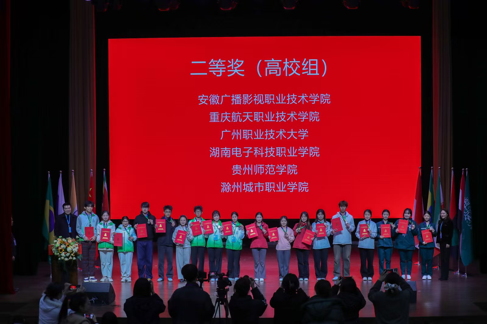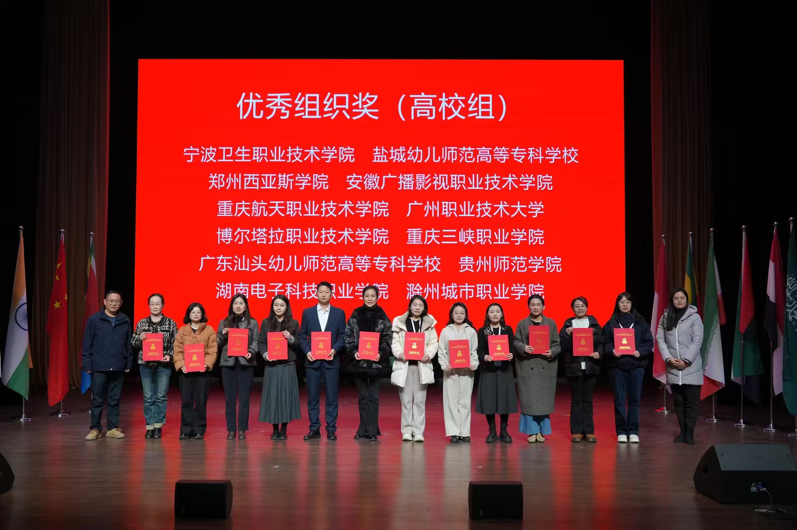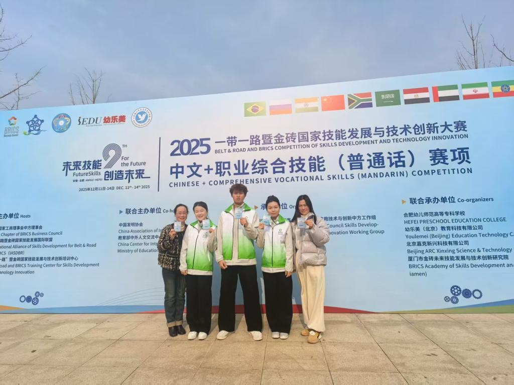 12月11日—14日,2025一带一路暨金砖国家技能发展与技术创新大赛中文+职业综合技能(普通话)赛项在合肥幼儿师范高等专科学校成功举办。教育学院学子在此次赛事中表现突出,由张媛、陈紫彤、蔡竟豪三位同学组成的参赛队(指导教师:高梅媛、顾雪光)凭借扎实的专业功底和出色的现场发挥,荣获大赛高校组二等奖。同时,我校亦凭借出色的组织工作与协作精神,被授予“优秀组织奖”。