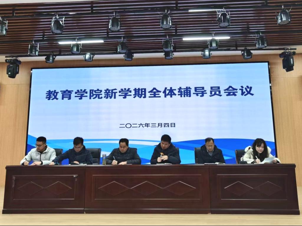春意萌动,万物复苏,正是深耕细作、蓄力前行的好时节。为统筹部署新学期学生工作,明确工作方向,压实育人责任,确保新学期学生工作开好局起好步,3月4日,教育学院在学院报告厅召开2026年春季新学期全体辅导员会议。教育学院党总支书记刘亮、党总支副书记陈立超、团总支书记黄正顺、学管钟久海及全体辅导员参会。会议由陈立超主持。