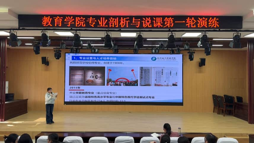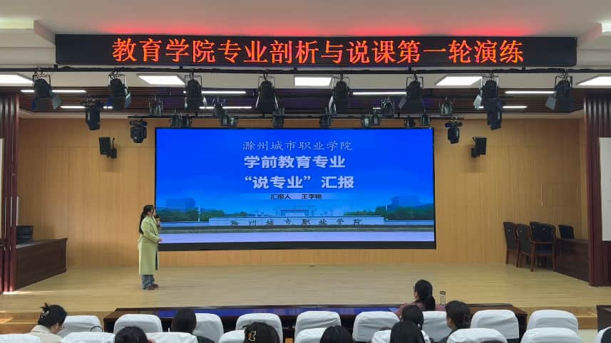 为深化职业教育教学改革,优化专业人才培养体系,提升教师教学创新能力,近日,滁州城市职业学院教育学院在报告厅隆重举行2026年专业剖析与说课演练活动。本次演练聚焦学前教育、早期教育、旅游管理三大核心专业,通过“专业剖析+课程说课”双轮驱动的形式,搭建教学能力提升平台,为后续教学质量升级与办学能力评价工作筑牢基础。