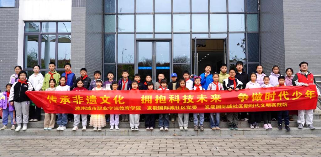暮春四月,风和日暖,正是走出课堂、实践研学的好时候。4月2日下午,滁州城市职业学院教育学院联合滁州市发能国际城社区,举办“非遗润童心,科技启未来”主题研学活动,近30余名小学生走进大学校园,在传统与现代的碰撞中,让春假变得充实而特别。