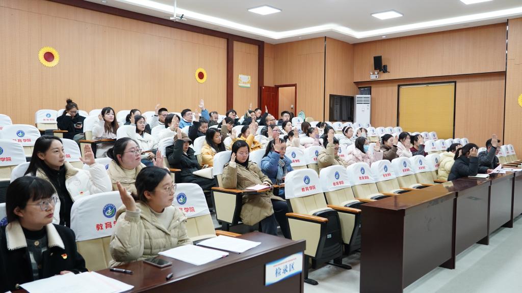 会上,刘亮同志代表上届总支部委员会作题为“勠力同心、克难奋进,为推动教育学院高质量发展努力奋斗”的主题报告,报告全面回顾和总结了过去五年学院党总支在学校党委的正确领导下,以习近平新时代中国特色社会主义思想为指导,认真贯彻落实党的二十大精神,坚持立德树人根本任务,认真履行管党治党、办学治院主体责任,守正创新、攻坚克难,以学校省级“双高”建设为着力点,按照“党建引领、科学管理、内涵建设、特色发展”的工作思路,全面加强党的建设,奋力推进学院高质量发展。