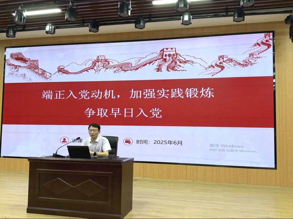 组织人事处组织科科长刘立峰以《端正入党动机,加强实践锻炼,争取早日入党》为主题,从端正入党动机开始展开精彩的授课,指出作为入党积极分子要树立正确的入党动机,加强实践锻炼,提升综合素质,以实际行动践行党的宗旨。