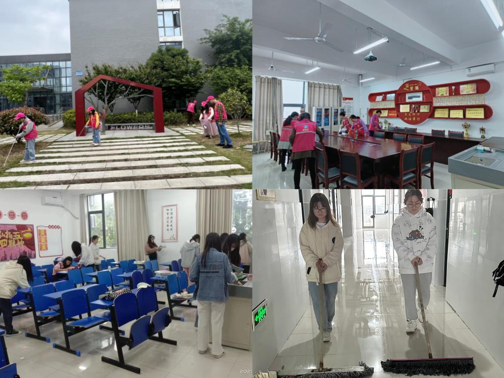 教育学院引导和组织师生参与各个层面的劳动体验,激励师生弘扬劳动品德、培养劳动技能、磨砺奋斗品格。教育学院教工党支部和学生党支部联合开展“周五一小时 扮靓我的家”文明实践志愿服务主题党日活动,党员教师身穿红色马甲,手持劳动工具,捡拾垃圾和烟头,清扫校园,认真、细致打扫每个角落,确保卫生不留死角,用实际行动美化校园环境;教育学院组织学生参与教室、寝室的卫生保洁、绿化美化等劳动实践活动,秉着“寝室是我家,安静、干净、和谐靠大家”的理念开展宿舍清扫活动,引导学生清扫地面、收拾书桌、擦拭宿舍、清理垃圾,并开展教室大扫除活动,带领学生清扫教室地面、将桌椅摆放整齐、清理垃圾、清扫角落灰尘,做到教室无垃圾、无杂物,鼓励学生积极主动参与劳动,坚持让学生通过自己的双手、汗水完成劳动教育活动,践行劳动责任与意识,促进学生形成正确世界观、人生观和价值观,展现学生热爱劳动、团结互助的精神风貌。